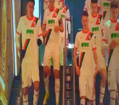 奥格斯堡球员亚基奇下半场出场时下楼梯踩空,腿部受伤被换下